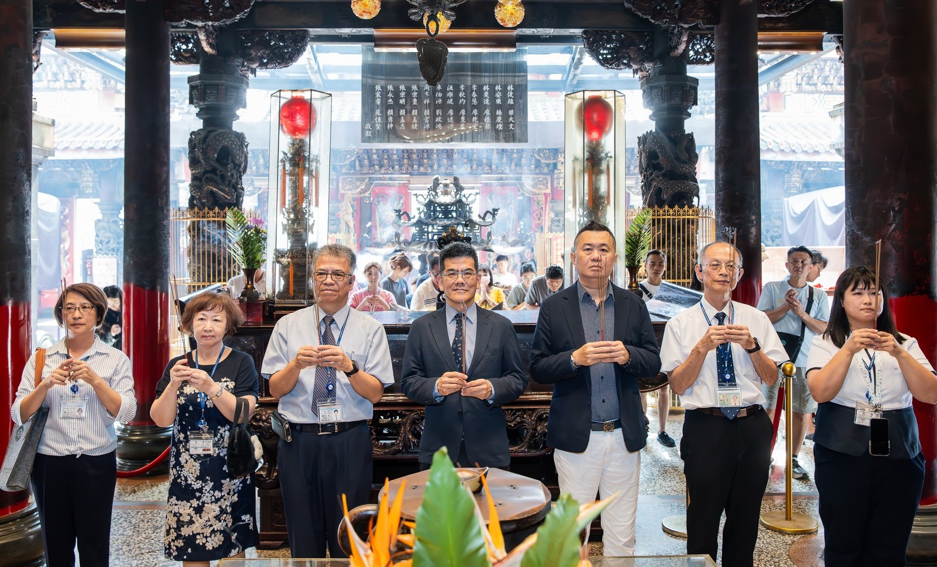 北港武德宮主委林安樂陪同臺大醫院雲林分院院長馬惠明及同仁參拜武財公,祈願建設順利圓滿。