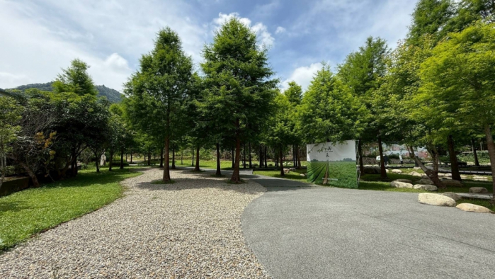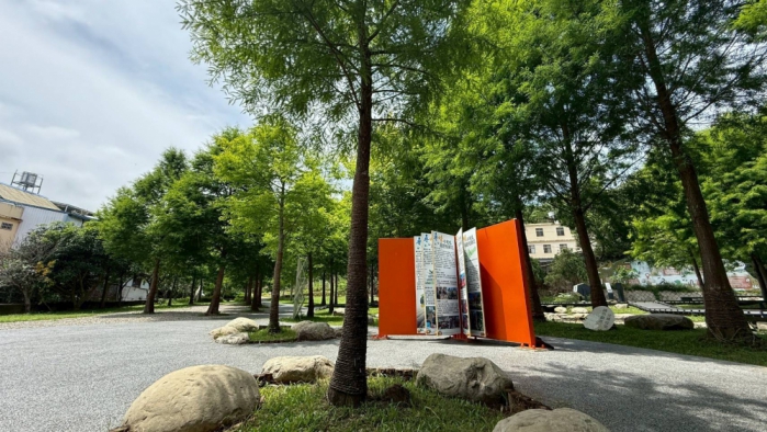 農村水保署臺中分署分署長陳榮俊說明,蛙境公園鄰近淺山次生林,為打造人與自然共好的環境教育場域,既有生態池採自然塊石及緩坡化等友善設計重新修砌,並運用透水混凝土、碎石鋪面及循環塑木等永續資材,建構出通行安全且全齡友善的步道動線。漫步其中,除可欣賞優美的水杉倒影、聆聽悅耳的蛙鳴鳥語,園內還設置有大型解說書本等導覽設施,帶領到訪者認識在地棲息的面天樹蛙、黃嘴角鴞、黃裳鳳蝶等「新十二生肖」物種及茶樹品種特色,可深度探索農村多元的生態魅力與產業風情。