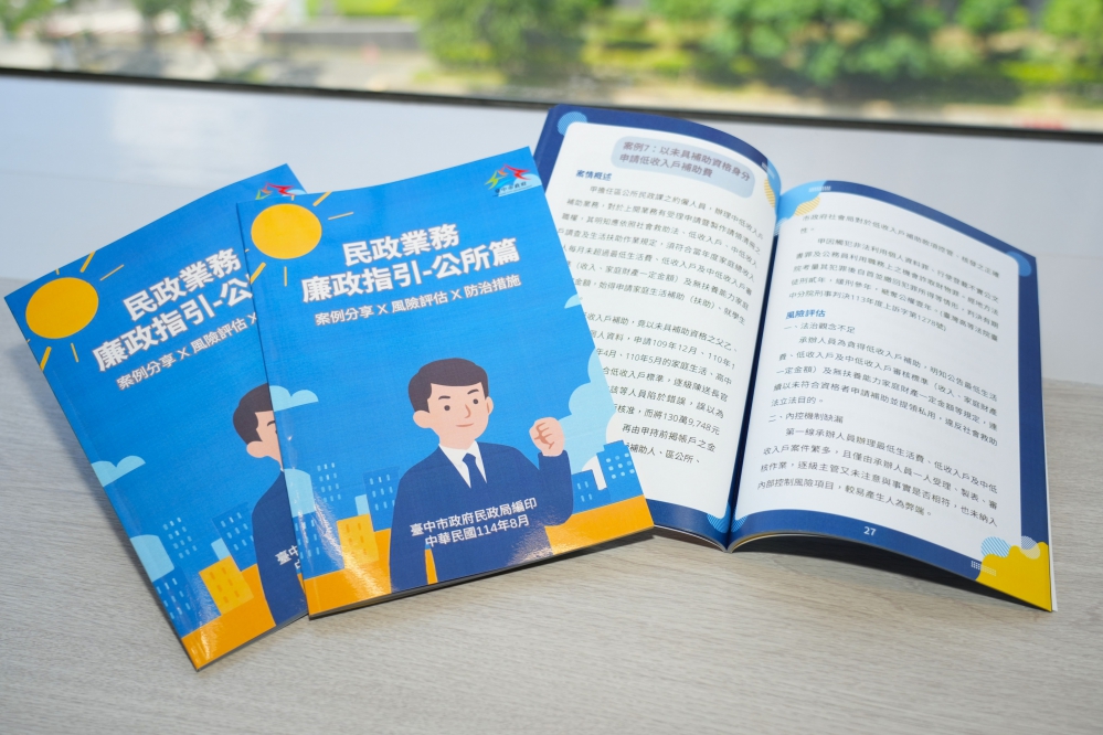 民政局補充,《民政業務廉政指引-公所篇》電子檔已於民政局官網「專區服務-廉政專區-法令宣導」專區(https://www.civil.taichung.gov.tw/22131/Lpsimplelist) 發布,公開揭示違失案例類型及預警防範措施,讓機關內部與社會大眾共同監督,達到「開放政府、全民參與」的目標。
