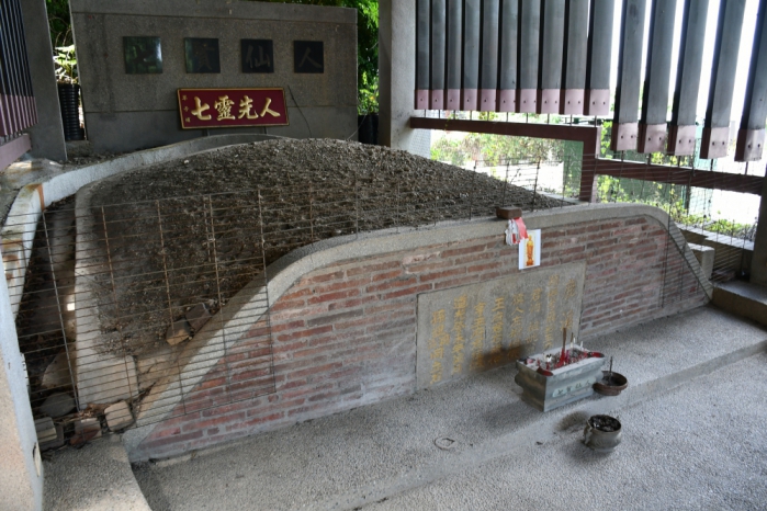 遊客中心對面的七壙古墓,有一段驚悚靈異傳奇,清道光三年(西元1823年),地方從鹿港請來7名戲班布袋戲,到「阿彌陀佛崁」演出,有扮演老僧戲班突然口念「阿彌陀佛」,念詞無法止住,扮演也演不完,7人恐懼萬分,不顧收拾拔足狂奔,翻山越嶺1公里,在草慈埔(草子埔)力竭而亡,地方將7人收屍合葬在同一墓塚,此為七壙(墓穴)的由來。