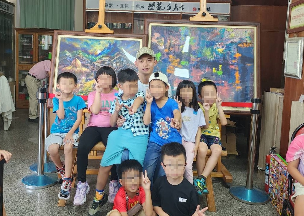嘉義縣番路鄉童年渡假村陳明順父子推動全民美術,10年來不斷精進美術教育。(圖/童年渡假村提供)