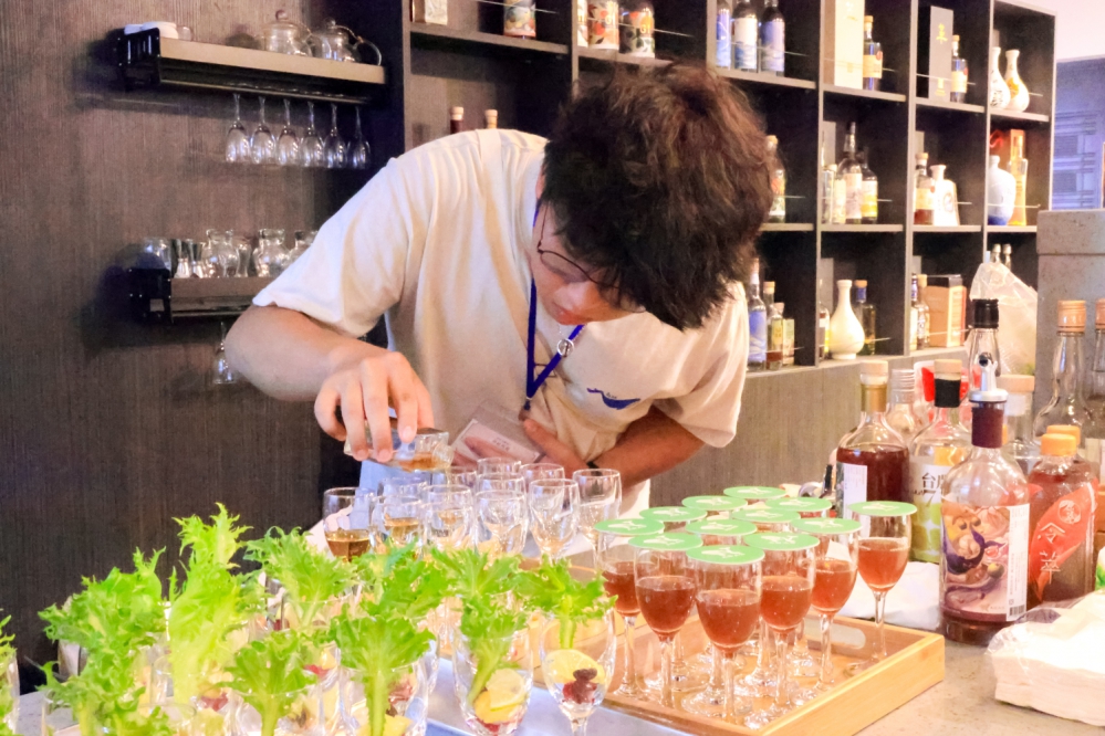 的調酒櫃」,讓喝酒變成一場「閱讀在地故事」的冒險。參加者可自由選擇基酒與搭配小點,並透過每杯酒專屬的故事標籤與 QR Code,探索在地人物與農產背後的努力。