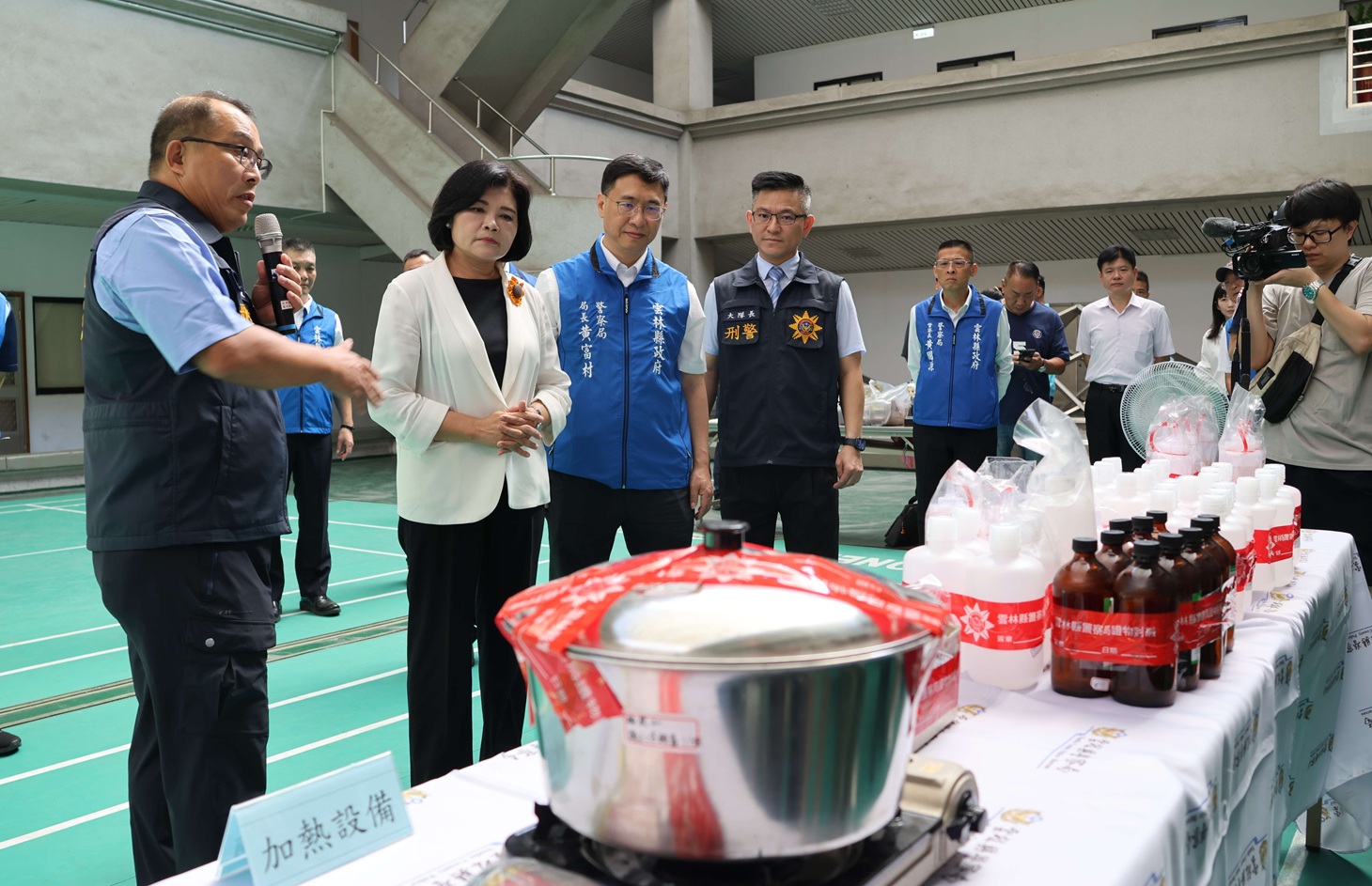 張縣長檢視查扣品後,並感謝縣警局全力查緝,成功攔阻大量毒品流入市面。