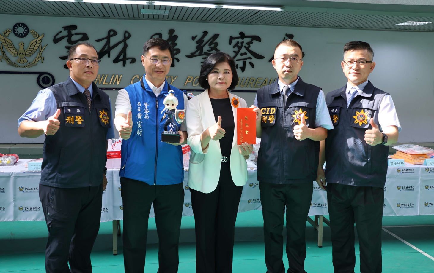 雲林檢警查獲「喪屍菸彈」分裝廠,張麗善頒發破安慰勉金鼓勵。