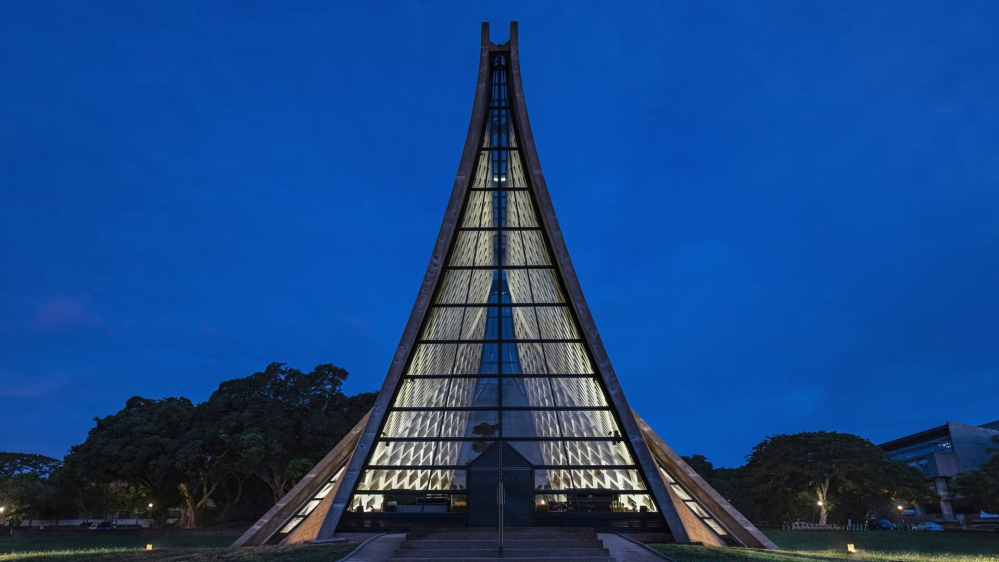 路思義教堂由世界級建築師貝聿銘與陳其寬共同設計,自1963年落成以來,象徵著東海大學的精神與信仰。然而在夜間,教堂的外觀長期缺乏適切的光環境,無法充分展現建築的張力與靈性。林靖祐老師親自操刀,從理念到執行一手掌握,導入隱微光源、溫潤色溫與智慧燈控系統,讓教堂在黑夜裡呈現靜謐莊嚴之姿。光影之間,不僅凸顯結構之美,更讓建築散發出深邃靈性的氛圍,向建築大師們的初心致敬。