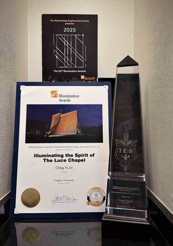 【記者張原銘、張皓傑台中報導】東海大學傳來國際喜訊!建築專業師資林靖祐老師領軍的「泓弦築影照明設計團隊」,以「照見教堂的靈性本質(Illuminating the Spirit of the Luce Chapel)」為核心理念,完成的路思義教堂照明設計,接連勇奪 2025 IALD 國際照明設計大獎(International Lighting Design Awards)與 IES 美國照明工程學會設計獎(Illuminating Engineering Society Award)。這是台灣照明設計界首度同時摘下全球兩大最高榮譽。