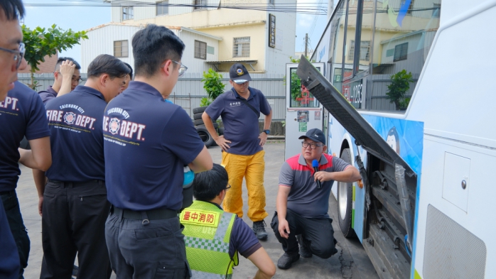 交通局也感謝金龍汽車製造股份有限公司實地講解車體結構、電池構造及位置,能讓客運業者及消防單位更熟悉相關設備操作,有助於緊急狀況快速應對及排除。