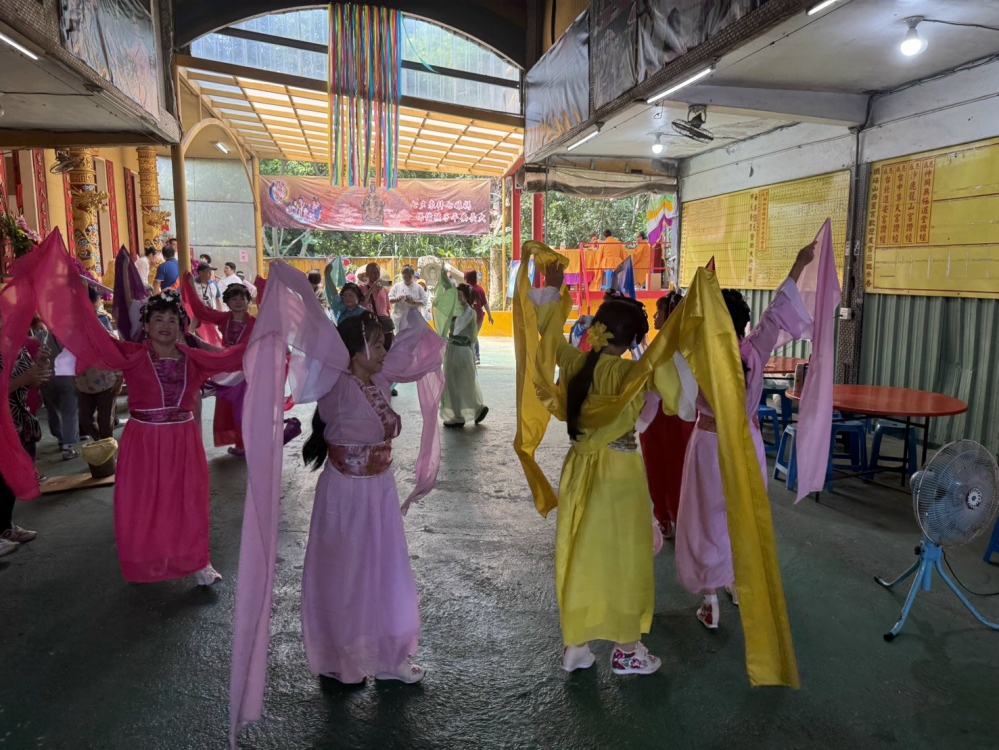 【記者陳榮昌大甲報導】台中市鐵砧山西靈宮,二十九日(農曆七月七日)隆重舉慶祝建宮三十五週年及七娘媽聖誕祭典等活動,穿著七彩古色鮮艷的仙女迎賓舞,一上午熱烈迎接各地而來的信眾、祝壽典禮隆重莊嚴,由於適逢七夕情人節,不少遊山的青年男女到場祭拜七娘媽,各慶典顯出古意,精彩且透著浪漫、溫馨熱鬧。