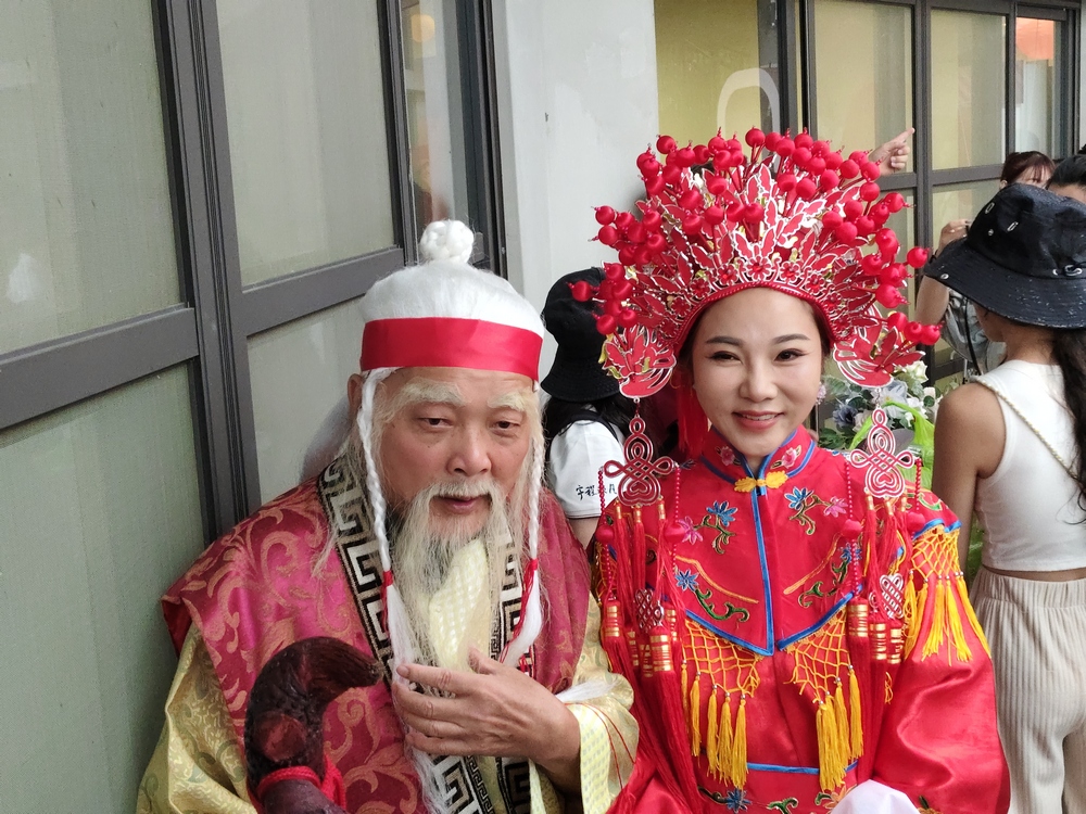 「阿里山23.5º浪漫SENSE」活動首次與嘉邑月老祖廟大福興宮配合,請出月老扮演加持拋繡球浪漫出擊。(圖/記者任芳葵攝)