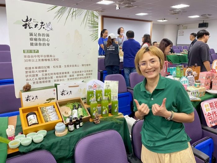 崧自在有限公司則推出「蘋安梨桃好運旺來 6 入松汁森林飲禮盒」、「森活沐浴保養禮盒」與「五葉松養生茶禮盒」,結合在地五葉松,展現青農品牌的創新能量。