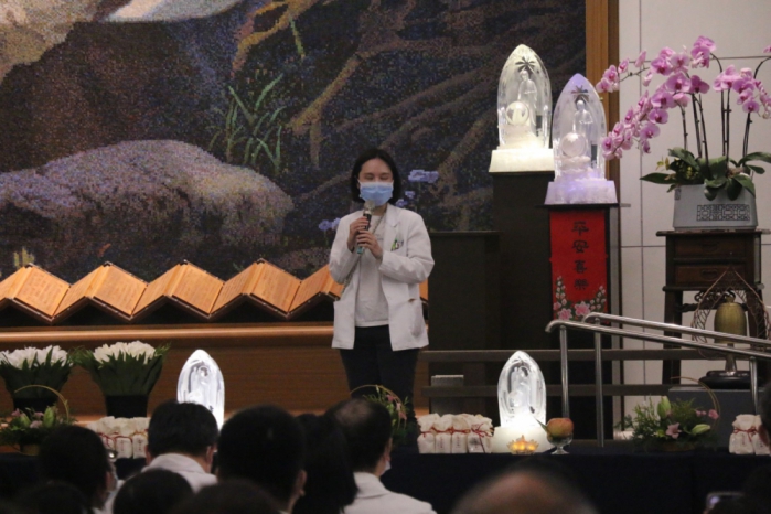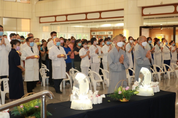 證嚴法師開示影片也呼籲蔬食共善念,造福得平安!環境與世局的變化,提醒大家要時時警惕自省。簡守信院長表示:「藉由祈福晚會,不僅體悟個人應如何付諸行動,更提醒醫護同仁專注醫療專業外,更要關注整體醫療環境轉變。唯有從自身內心出發,讓善念產生漣漪效應,才能擴散祝福的力量」。