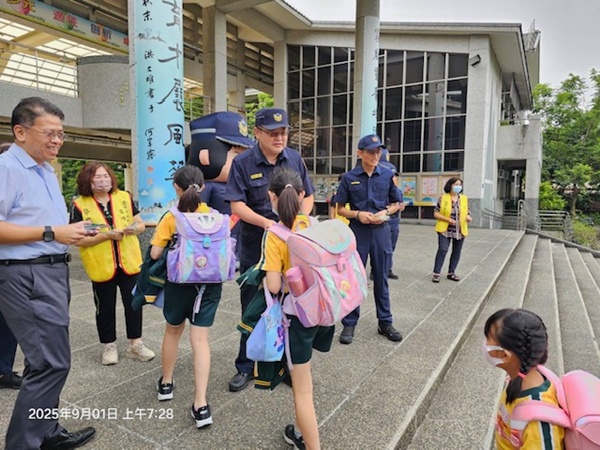中華國小校長包沛然表示說,新的學期開始,一早就看到辛勞的警察同仁到校維護學童們安全,並貼心準備許多精美小物發送小一新生們,一同給他們加油打氣,實在感受到警方的用心。