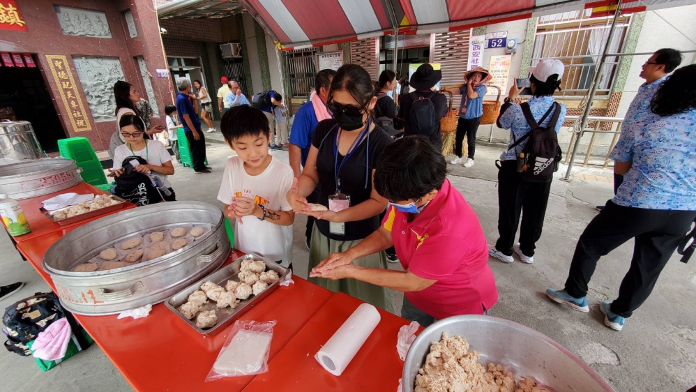 中午移師西安社區活動中心,民眾親手製作芋粿巧與草仔粿,透過竹片童玩遊戲,重現客家先民翻山越嶺、墾荒種植的生活智慧。午餐則享用充滿濃厚人情味的割稻飯,體驗昔日農村合作共耕的溫馨氛圍。