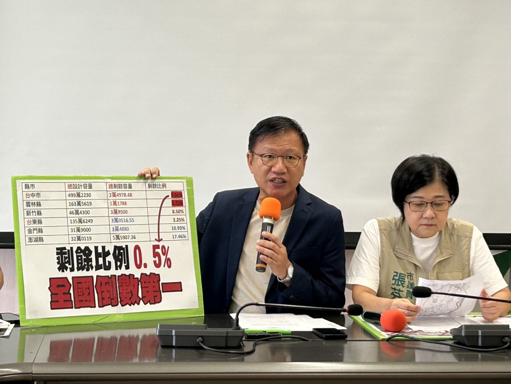 而根據環境部統計「全國各縣市營運中的公有掩埋場剩餘掩埋容量」,大里掩埋場早在2024年7月就已經滿載,她批評市府一邊美化數字、一邊持續讓垃圾進場,大里人只能被迫承擔。