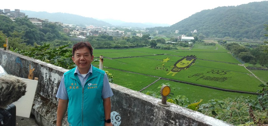 「2025攜手稻關西」稻田彩繪正式完成!人氣吉祥物「皮皮獅」驚喜現身,繽紛稻田如大地畫布般展開,成為入秋第一站彩繪打卡點。彩繪稻田技術為天然方式—不噴漆、不染色,而是利用多種彩色稻米品種如紫葉稻、黃梗稻與青秧稻,搭配即時動態定位插秧技術,由傳統2D圖像轉化為3D圖像,透過對品種色澤與行列排列的精準掌握,讓整片稻田隨著時間長出一幅漸層自然的藝術畫面,展現農藝與藝術結合的獨特魅力。