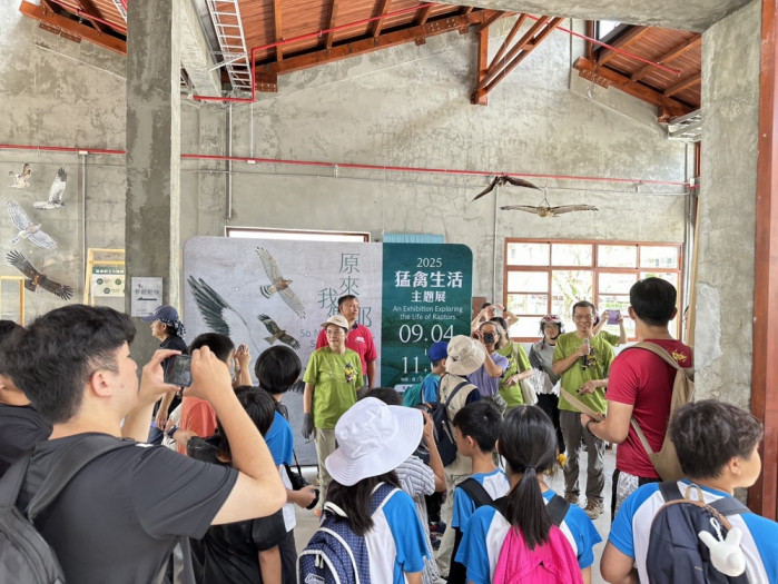 猛禽展開展首日吸引了當地的中坑國小師生前來參觀,認識生活中的猛禽。 -