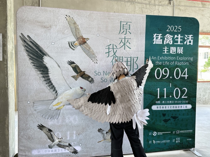 【記者張原銘、張智凱台中報導】林業及自然保育署臺中分署與生物多樣性研究所、台灣野鳥協會於東勢林業文化園區修理工廠合作舉辦「原來我們那麼近-猛禽生活主題展」,展覽期間自9月4日至11月2日,以「猛其林」、「猛時尚」、「猛好宅」、「猛航線」、「猛生活」等日常切面,帶領參觀的民眾走進猛禽的世界,了解猛禽如何於自然與城市之間穿梭遊走,在你我身邊生活,更認識猛禽在生態系中的重要地位與面臨困境,重新定位與猛禽的距離!