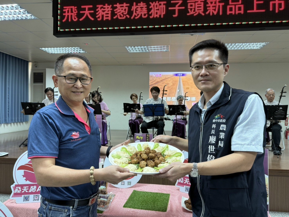 【記者陳榮昌大安報導】台中市大安區農會「飛天豬」品牌,再度創新推出經典中式家常料理—飛天豬蔥燒獅子頭,於五日上午隆重舉辦「蔥燒獅子頭新品上市發表會」。總幹事蔡建宗表示,這次蔥燒獅子頭產品開發,針對肉餡、安泉米與調味比例反覆測試,精準調配紅燒醬汁的甘醇與濃稠度,確保口感細膩飽滿。加入在地安泉米能讓獅子頭口感更加綿潤,湯汁吸附力更佳,是兼具傳統風味與現代輕食的理想選擇。