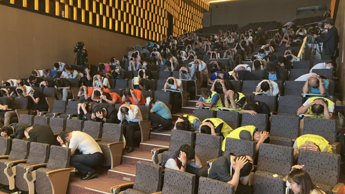消防局指出,今日適逢國家防災日活動,於9時21分發布模擬地震國家級警報,利用災防告警細胞廣播服務(Cell Broadcast Service,CBS)技術將防災資訊即時發送予民眾,使民眾熟悉告警訊息服務及後續避難演練,論壇現場亦讓所有參與者以「趴下、掩護、穩住」抗震保命三步驟進行地震避難掩護演練。