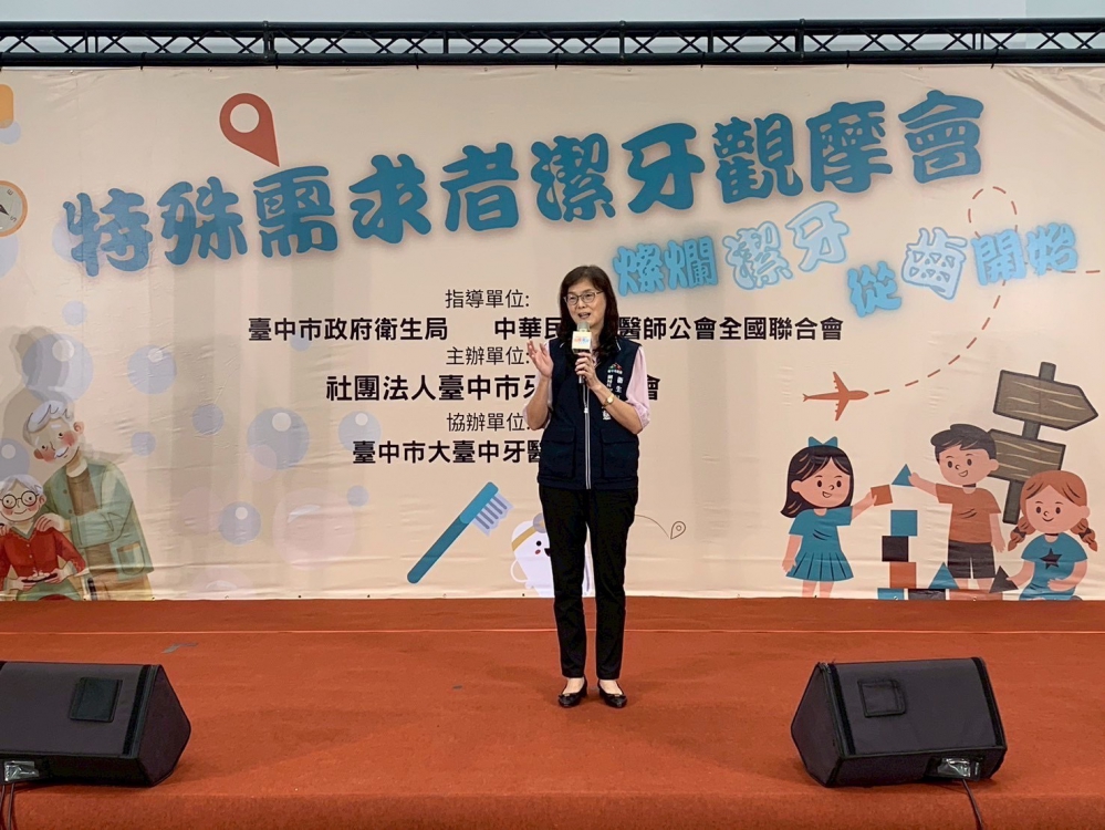 114年度特殊需求者潔牙觀摩會活動,衛生局副局長邱惠慈、教育局副局長郭明洲、立法委員楊瓊瓔、立法院副院長江啟臣代表羅特助、社團法人臺中市牙醫師公會理事長吳尚書、社團法人大臺中牙醫師公會理事長張天俊、中華民國牙醫師全國聯合會副秘書長林傳凱及社團法人中華民國牙醫師全國聯合會特殊需求者口腔照護委員會主委蘇祐暉共襄盛舉。