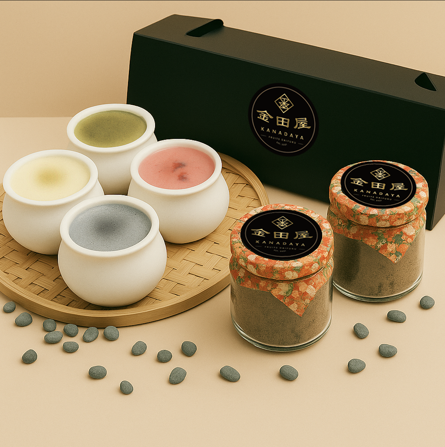 金田屋首度快閃新光三越台北南西本館「日本展」,9月25日至10月7日,祭出獨家限定「奶油蕨餅禮盒」(6入,優惠價888元),內含芝麻奶油、草莓奶油、抹茶奶油、純鮮奶油等4種蕨餅搭配芝麻布丁。招牌「草莓奶油蕨餅」與「抹茶奶油蕨餅」小巧優雅,完美展現日本職人甜點的細膩氣韻。