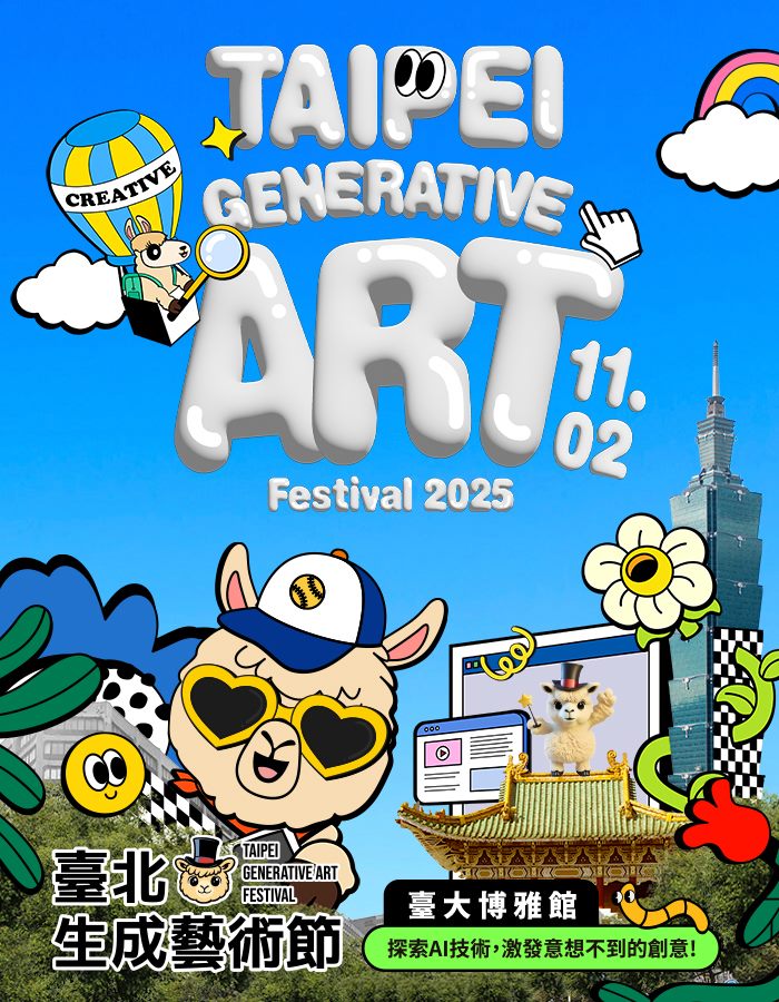 臺北市政府將於11月2日(日)舉辦「2025臺北生成藝術節」,本次活動將在國立臺灣大學校總區博雅教學館熱鬧登場,繼去年首度舉辦廣受好評後,今年活動再度回歸,邀請全臺創作者齊聚一堂,於限時挑戰中展現生成藝術的無限可能。
