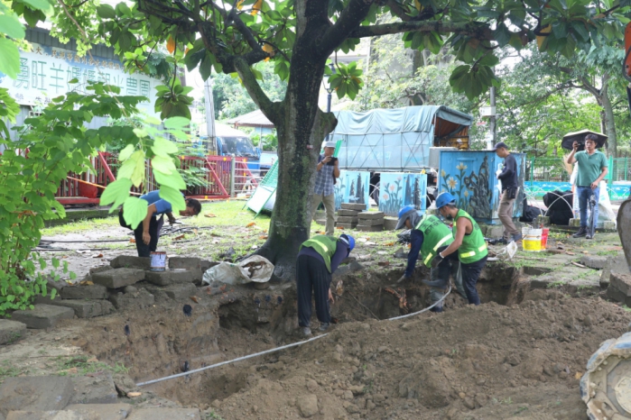 立法院中南部服務中心主任邱俊龍表示,園區與林試所進行褐根病防治合作,第一階段已於8月14日完成全區褐根病及病株調查,第二階段則擇定病區進行褐根病實務操作之燻蒸消毒示範。本次實務操作針對園區不同的病株特性進行各種防治策略,包括病株樹頭的焚燒、利用特定菌種進行殘株樹頭的分解、宿舍區進行樟樹的萌蘗更新,並於褐根病疫區示範進行阻絕溝設置、病根撿除、邁隆藥劑 (dazomet)的拌入及褐根病檢體置入等標準作業程序。