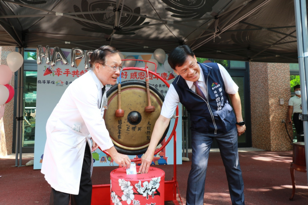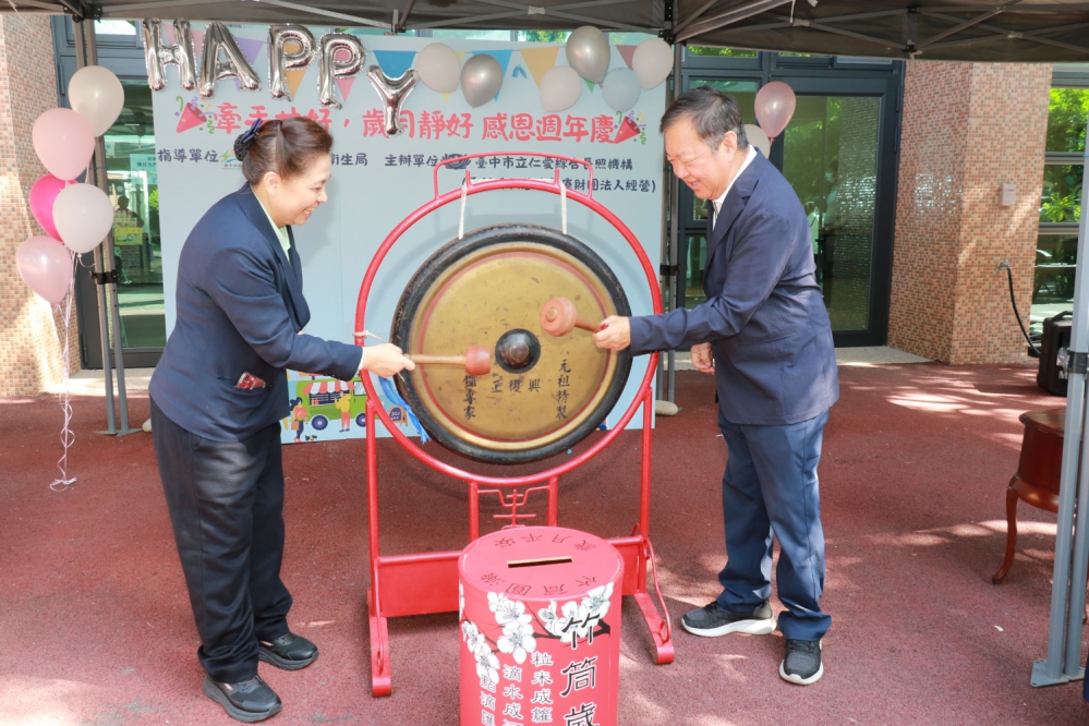【記者張原銘、張皓傑台中報導】臺中市立仁愛綜合長照機構歡慶啟業周年,25日舉辦「牽手共好.歲月靜好」感恩活動。臺中市衛生局長曾梓展和機構長輩同樂,並與台中慈濟醫院院長簡守信敲響愛心鑼,為花蓮光復鄉災民捐款。感恩活動動靜態表演熱鬧,有園遊會市集、節目表演和闖關遊戲。