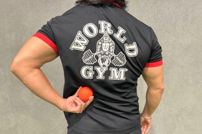 1、按摩球放鬆:舒緩腰方肌的第一步,是透過按摩球放鬆。將手放在腰部正後方,摸到脊椎的骨突後再往外移動,經過豎脊肌的隆起,來到較平坦的交界處,即為腰方肌位置。把按摩球放在腰方肌上,避免壓在脊椎或骨頭,輕按找到痠痛點,保持壓力30-60秒並深呼吸,讓肌肉逐漸放鬆。