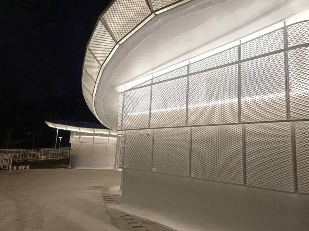 建設局長陳大田指出,漫步文心森林公園,除了綠意盎然與廣闊草坪,如今更能驚喜遇見「藏在森林裡的小白宮」。白日純白的現代建築線條優雅;入夜後柔和燈光勾勒夢幻光影,如同秘境般低調卻閃耀。
