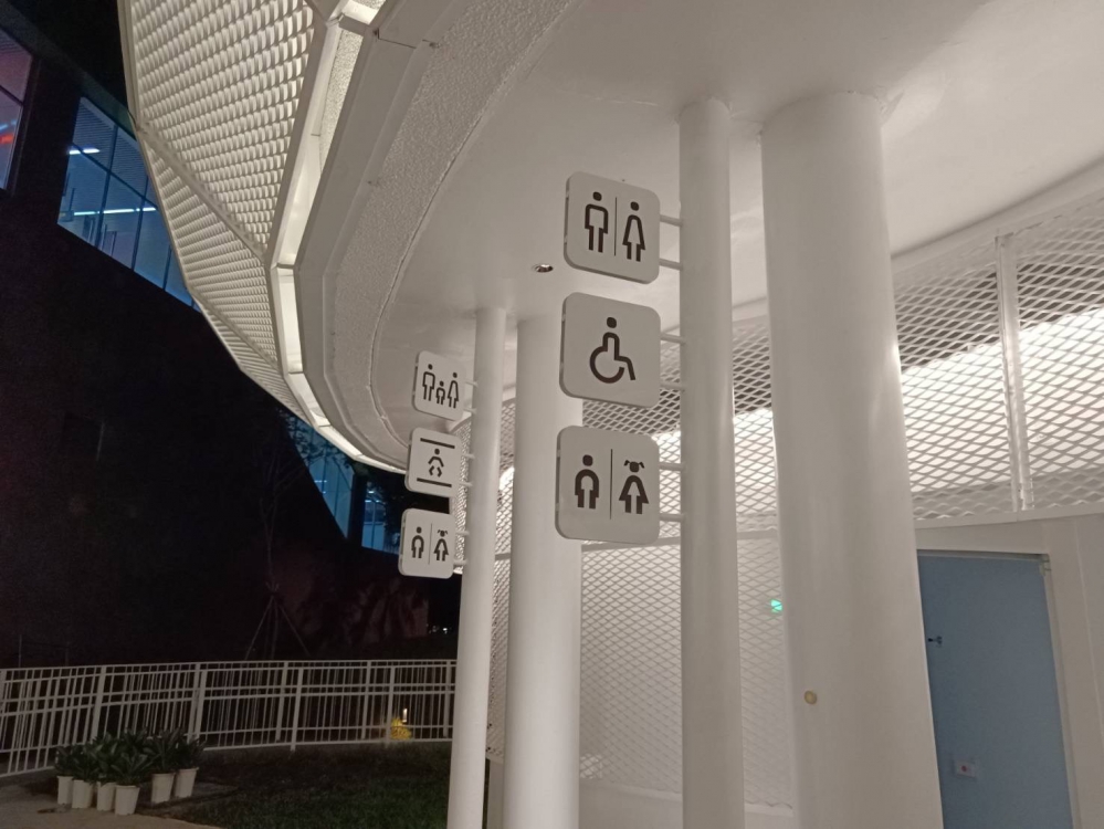 陳大田表示,「親子小白宮」兼具美感與實用。內部規劃親子廁所、哺乳室及性別友善廁所,並設有兒童專用馬桶與洗手台,滿足不同族群需求。男女廁比例達1比6、坐蹲間比例13比8,優於一般公廁標準,有效紓解公園人潮高峰的等候問題。另結合智慧管理系統,提供 QR Code 即時通報、耗材監控與久待示警功能,讓民眾使用更舒適,也大幅提升維護效率。