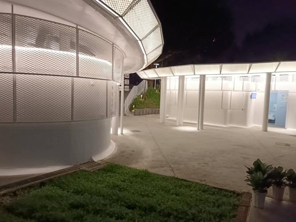 【記者林獻元台中報導】迎接雙十國慶喜氣,台中市政府提前送上驚喜禮!文心森林公園全新「親子小白宮」陽光公廁近日正式啟用,白色純淨的建築隱身綠意樹海,白天俐落清新,夜晚點燈後宛如閃耀光盒,為公園增添神秘浪漫的迷人氛圍。建設局長陳大田28日表示,「親子小白宮」不僅是一座公廁,更是森林中的亮點新景,歡迎市民與遊客前來探索拍照,留下城市專屬的美好記憶。