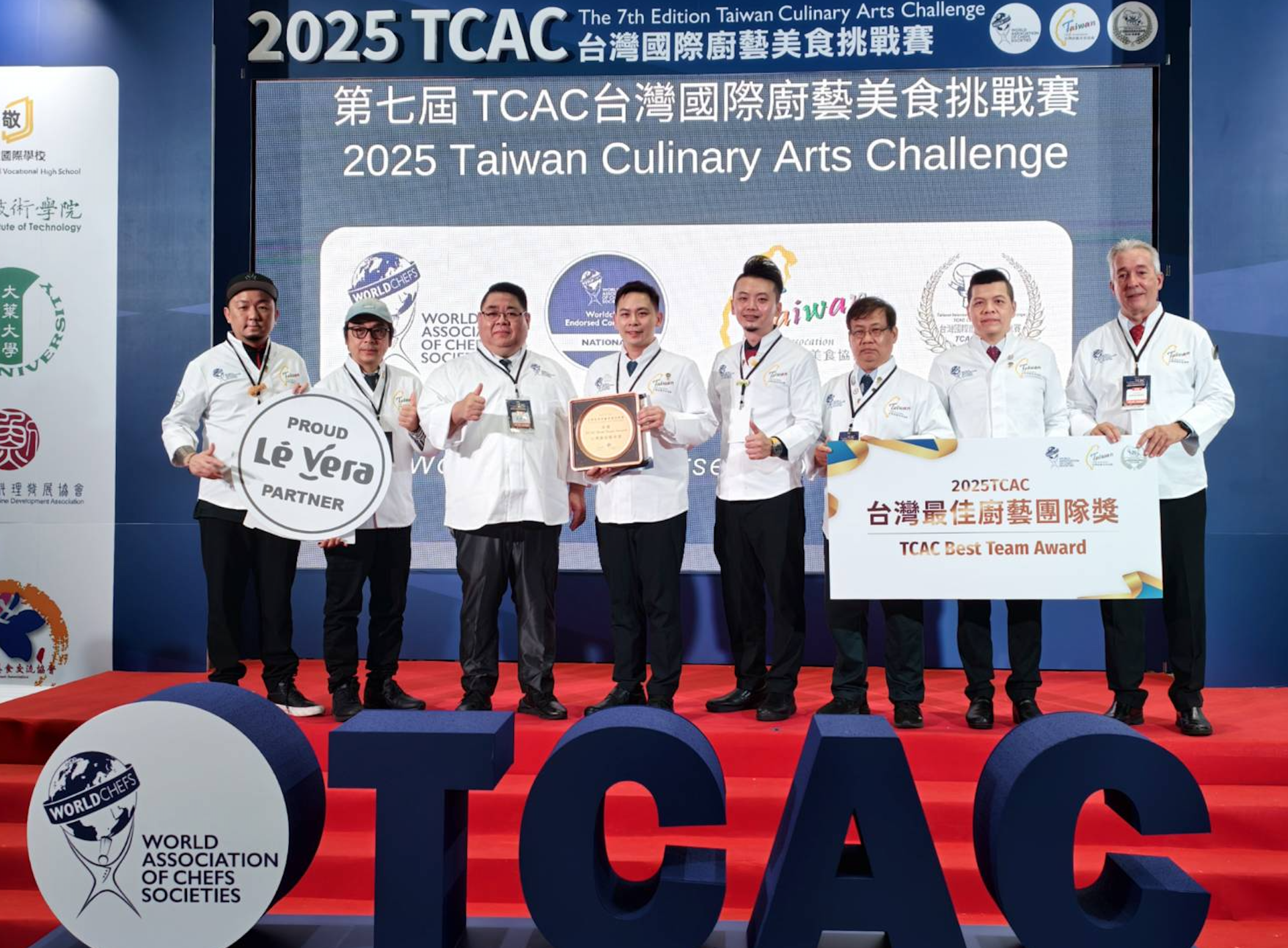 頒獎典禮揭曉獎項,其中TCAC「最佳西式料理廚師獎」由陳睿智奪得,TCAC「最佳亞洲風味料理廚師獎」由高承洋獲得,TCAC「最佳烘焙廚師獎」由張原賓摘下桂冠,TCAC「世廚最佳廚藝團體獎」由台北城市科技大學榮膺;此外,ICIF最佳特別獎鄭宇婕,以及TCAC「台灣最佳廚藝團隊獎」由景文科技大學獲得,成為今年賽事一大黑馬。