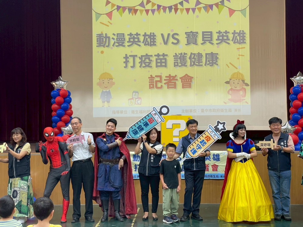 【記者林獻元台中報導】114年公費流感疫苗1日正式開打。台中市政府衛生局於北區健行國小舉辦記者會,結合孩子最喜愛的動漫角色,透過創意話劇宣導疫苗接種的重要性,吸引師生熱情參與,場面活潑熱鬧。