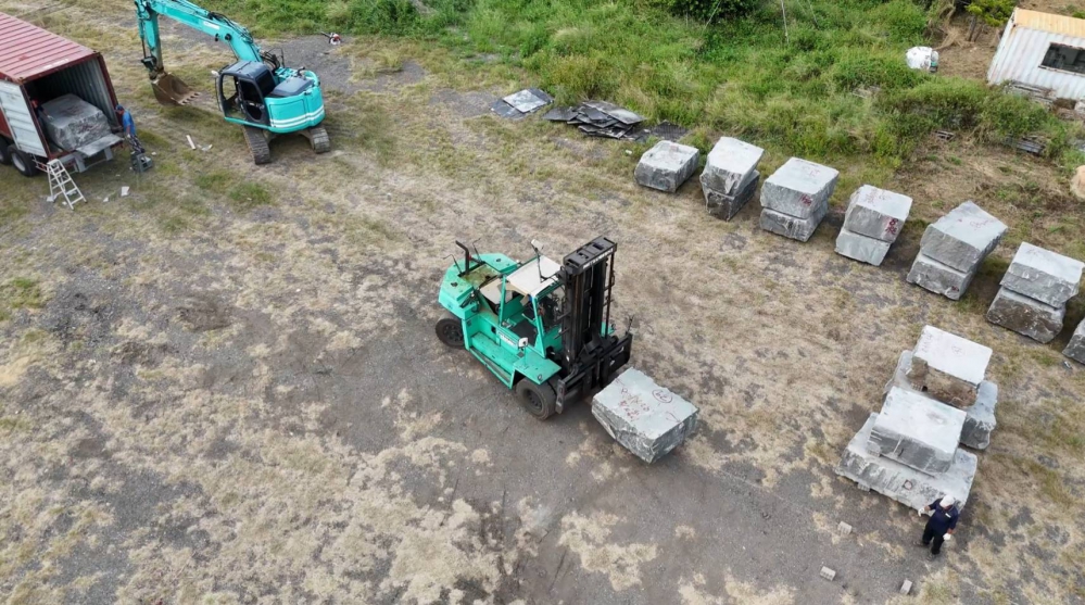 林肇睢說,此次林董事長完全免費捐贈,玻璃廟只付少許海上及陸域的運費。今天剛好整個石頭在卸櫃,而且捐贈的人也剛好從柬埔寨來到這裡,我們非常感謝他義舉。