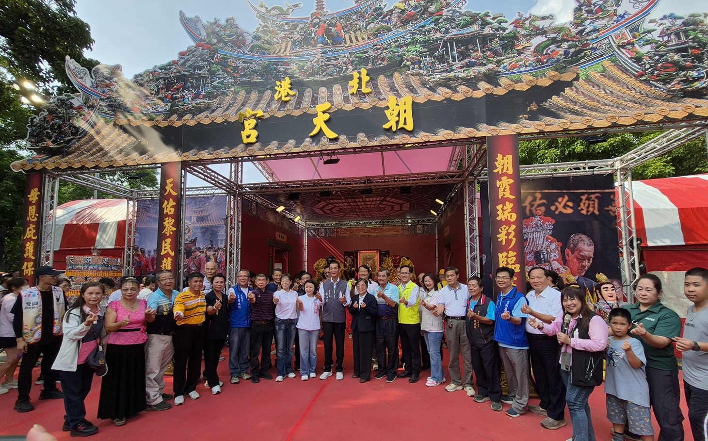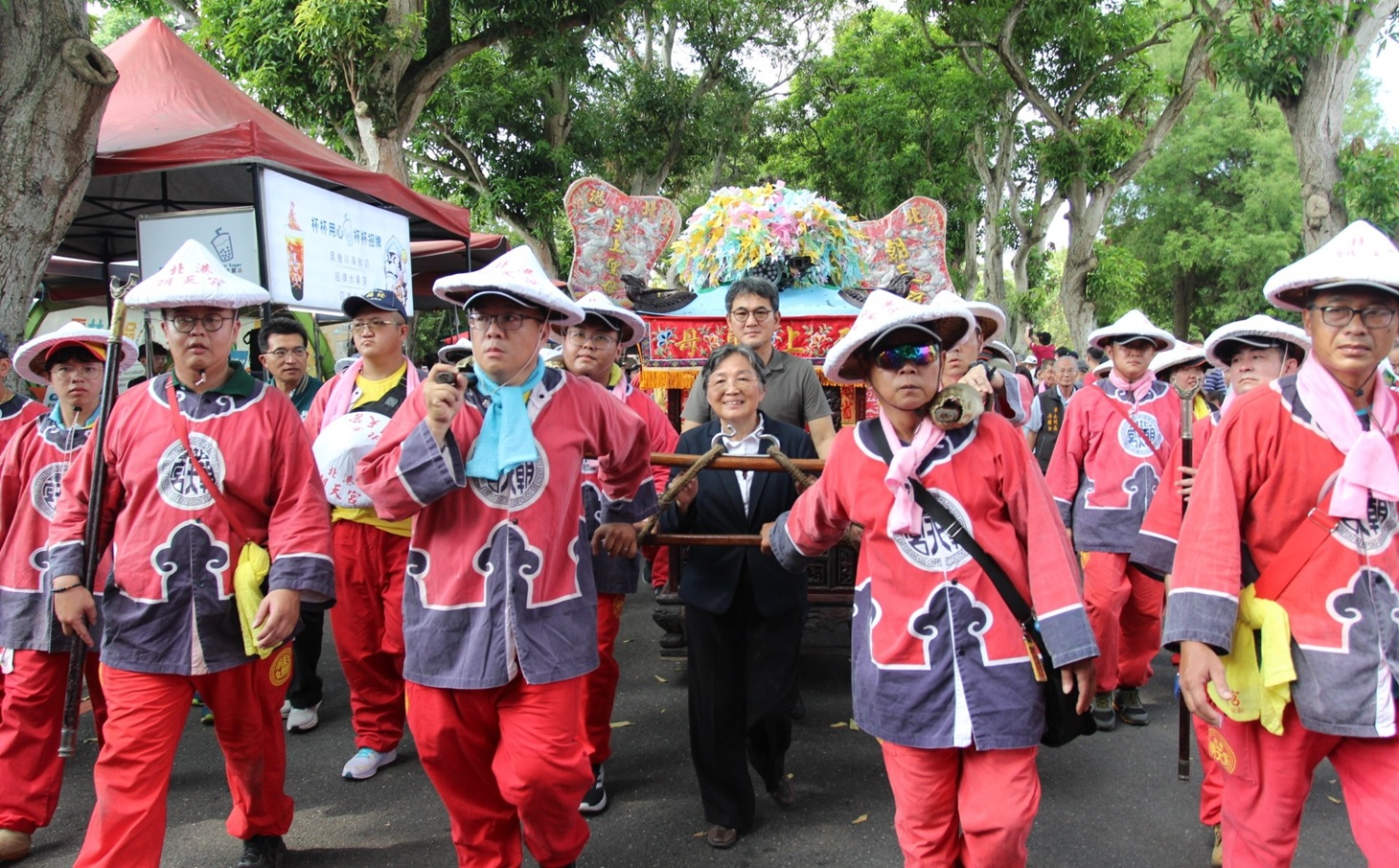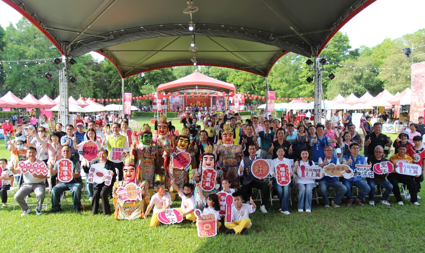 北港朝天宮媽祖駐駕古坑綠色隧道的228公園,傳遞「跟著媽祖來古坑喝咖啡」的文化意象。