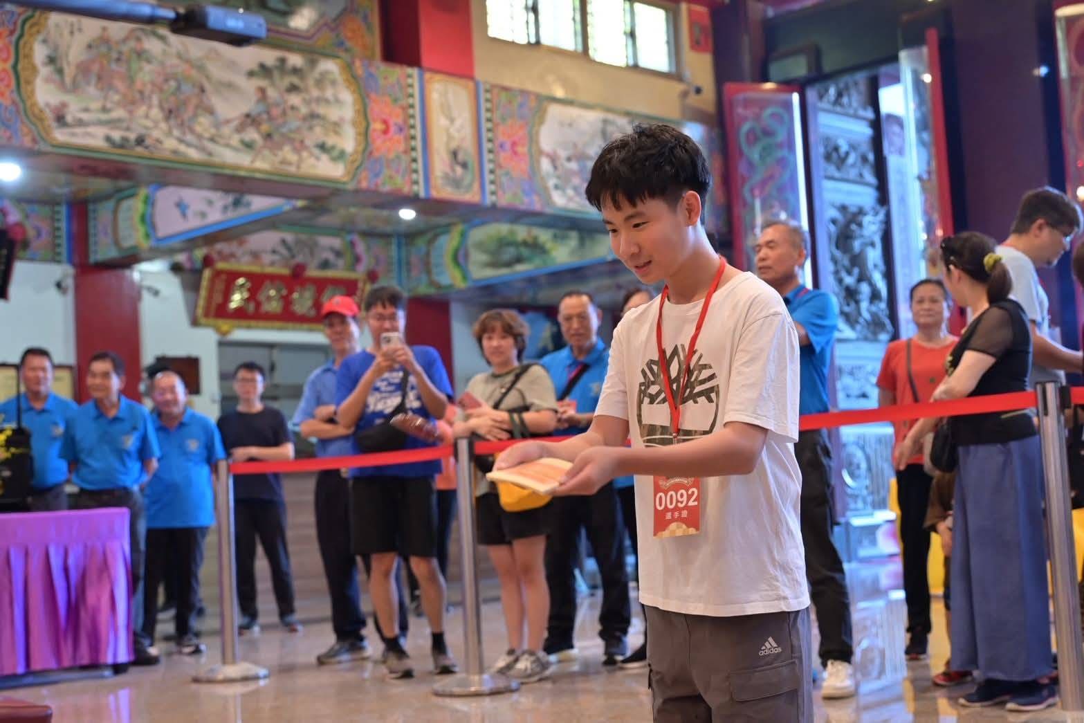 ▲擲筊送金牌吸引百民眾參與。