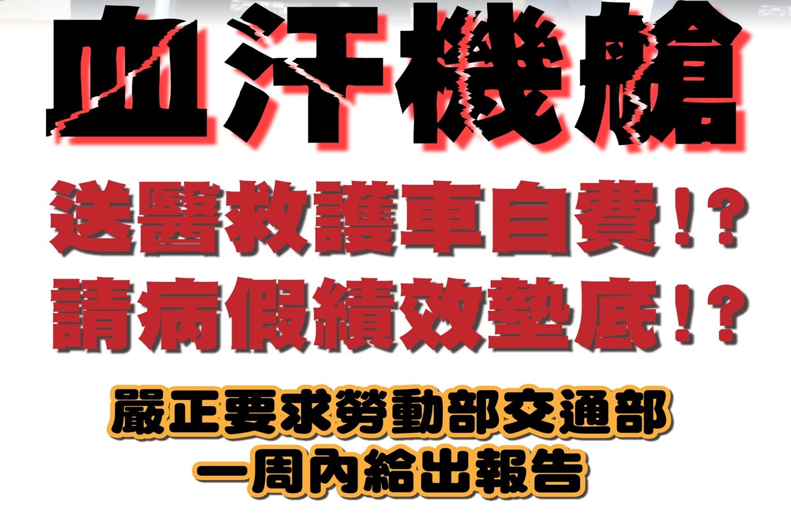 「績效制度」造成員工不敢請病假,逼迫員工「硬撐上班」,請病假即被列為績效墊底,又拋「救護車要自費嗎?」,這樣的血汗制度,勞動部怎能毫不知情?(圖/記者蘇峯毅翻攝)劉建國要求勞動部必須會同交通部,立即對長榮航空展開調查,徹底檢視其勞動環境、管理制度與安全SOP執行情況,並於一週內向立法院提交報告。他強調,長榮今年已因違反勞基法遭罰288萬元,但罰款對大企業而言似乎淪為「例行規費」,顯示現行法令罰則不足以遏止企業違法。