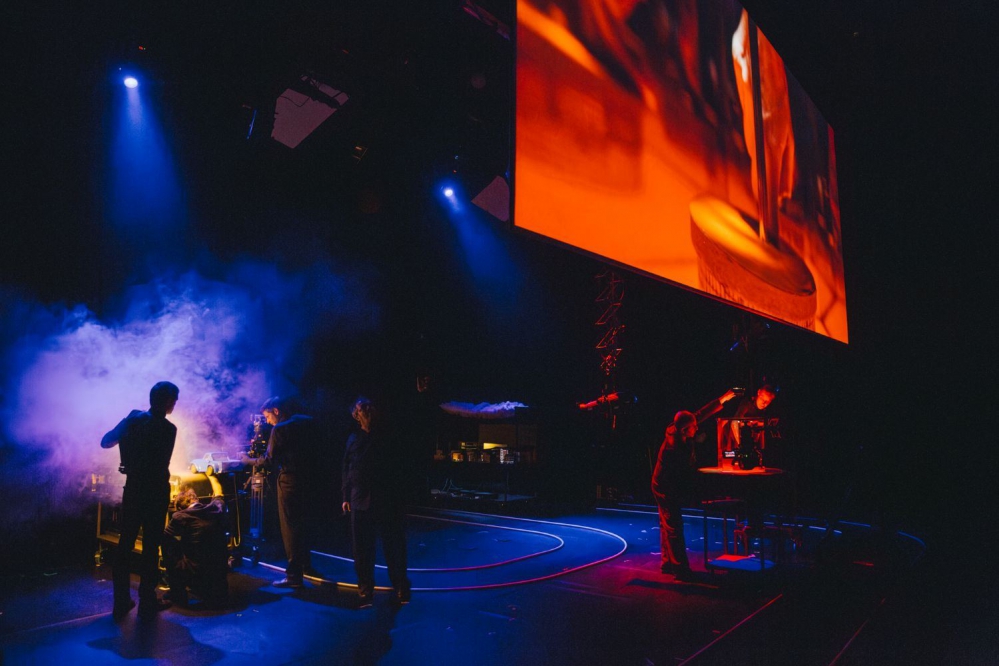 《Kiss & Cry》的靈感是從在餐桌上實驗遊戲開始的,編舞家蜜雪兒.安.德梅(Michèle Anne De Mey)與導演賈柯.凡.多梅爾(Jaco Van Dormael)將電影拍攝技術搬上劇場舞台,運用精巧的迷你物件、微縮模型擺設,以及攝影機鏡位切換的魔法,打造現實與夢境交錯的魔幻空間。現場即時拍攝並同步投影至大銀幕,觀眾能從銀幕欣賞細膩手指動作的影像,也能看見舞台上精準的調度走位與拍攝全貌,宛如看電影時也同時置身拍攝片場,打造雙重感知的觀劇體驗,劇場語言相當新穎。