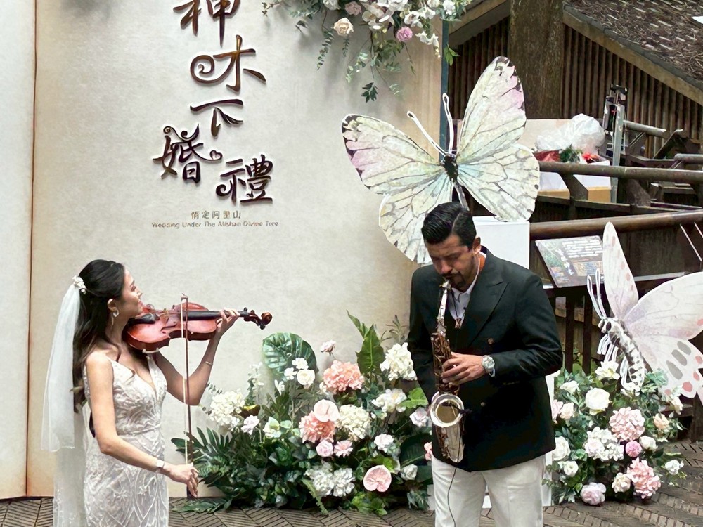 今年以浪漫為主軸,阿里山神木下婚禮串聯一系列節慶活動和鄒族體驗熱鬧舉行。(圖/ 阿里山賓館提供)