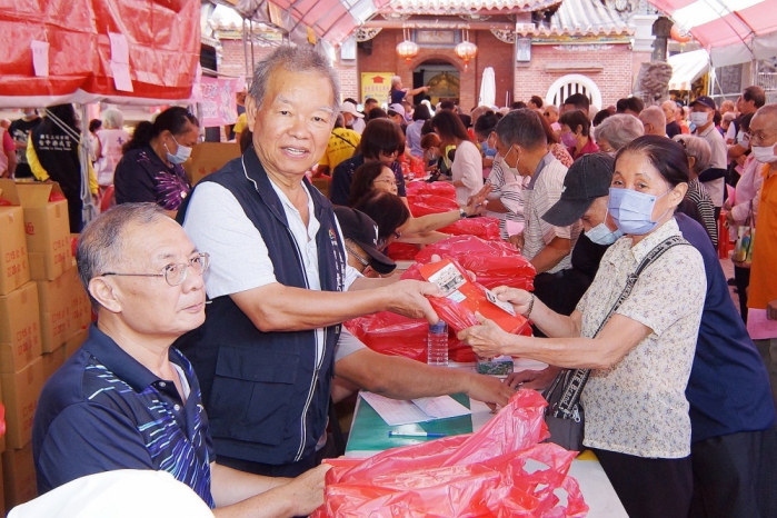 何敏誠說,樂成宮重陽敬老禮金發放標準,為樂成宮轄區八里(旱溪、樂成、泉源、干城、東門、東信、十甲、東英)70至79歲4289人每人1000元、80至89歲1281人每人2000元、90至99歲250人每人3600元、7位百歲人瑞每人12000元、每位長者並送代表長壽的平安麵線一包。今年人數成長357人,禮金增加396800元。