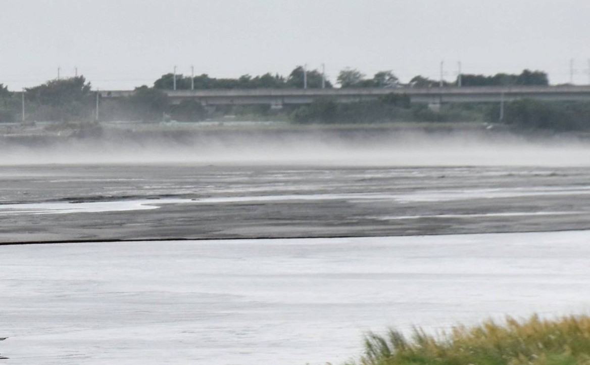 濁水溪高灘地大片細沙裸露未覆蓋,風沙隨風漫天飛舞,導致沿岸地區再陷「霧茫茫」的風沙困境。