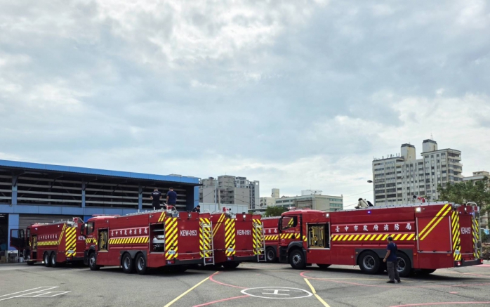 【記者林獻元台中報導】為強化救災效能,台中市政府消防局日前辦理消防車輛採購驗收,共12輛消防新車加入戰力,包括水庫消防車6輛及化學消防車6輛。消防局指出,此次新車全面導入安全與智慧科技,底盤配備防鎖死煞車系統(ABS)、加速防滑控制系統(ASR)、斜坡起步輔助裝置等安全設計,並新增行車視野輔助、盲區偵測警示、車身反光標示與警示燈等裝置,提升行車安全。
