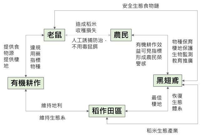 黑翅鳶,這隻曾被視為陌生訪客的猛禽,如今成為霧峰田野的守護者。牠們以田鼠為食,取代化學滅鼠劑的角色,不僅維護了農田生態系統平衡,也成為環境健康的生物指標。自2017年起,霧峰區農會與屏科大攜手設置竹製棲架,吸引黑翅鳶在田間定居繁殖,同時以黑翅鳶米、黑翅鳶酒等品牌推廣友善耕作理念,創造出兼具保育與經濟價值的生態產品。
