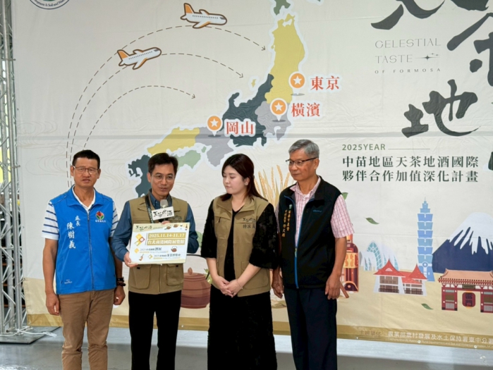 【記者張原銘、張皓傑台中報導】臺灣茶酒產業憑藉深厚文化底蘊與地方特色,成為農村經濟發展的重要支柱,為深化臺日文化交流與行銷臺灣特色農村產業及遊程,農村發展及水土保持署臺中分署積極推動以「在地、品質、永續」為核心精神的「天茶地酒」品牌,將臺灣中苗地區優質的特色茶與酒,及農村好物推向國際舞台。今年攜手ANSMING JAPAN株式會社(恩詩國際行銷有限公司),將多項特色產品正式啟航出口日本,積極拓展相當注重品質與風味的日本市場。