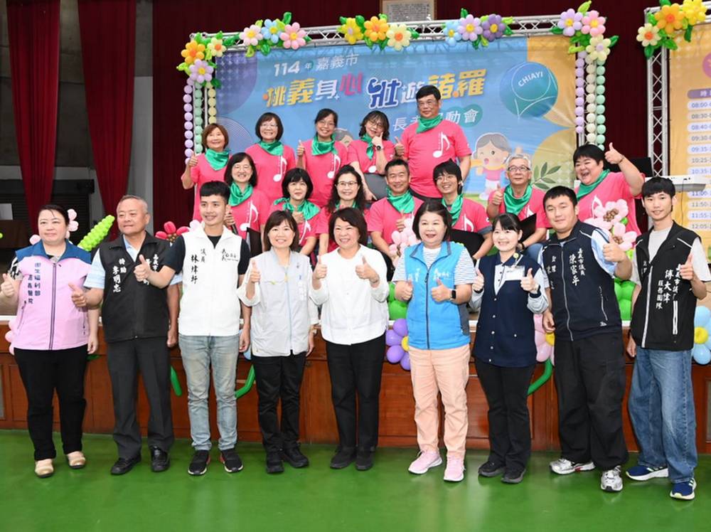 (記者任芳葵嘉義報導)嘉義市首屆「桃義身心‧壯遊諸羅-長者運動會」30日熱鬧登場,有20處巷弄長照站總計320位長輩及據點人員共襄盛舉,嘉義市醫事C巷弄長照站參加率達100%,更有5位90歲長輩,黃敏惠市長特地致贈呷百二紅包,勉勵大家能健健康康活到120歲。