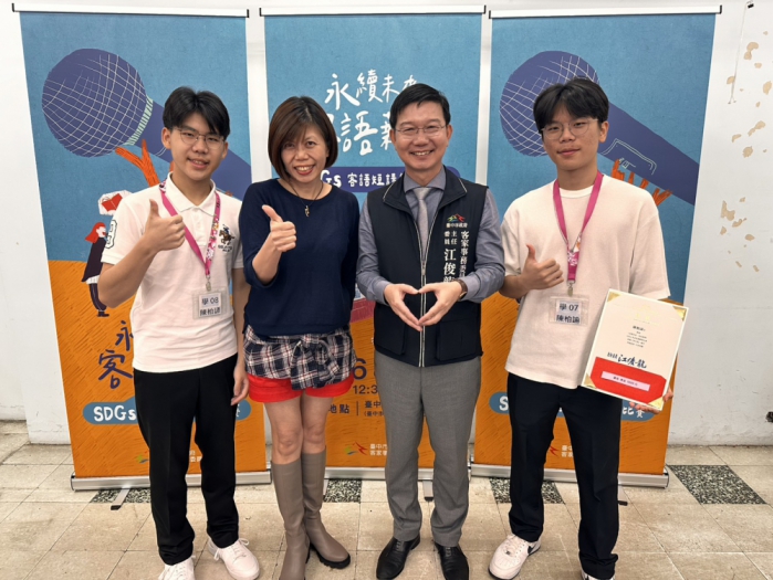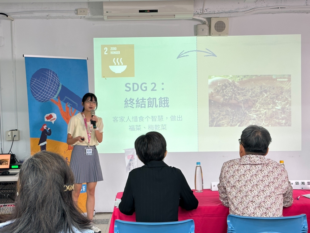 參賽者劉芷榕同學表示,因為自我期許想要自我挑戰,這次比賽的內容及簡報都是自己一手操作及準備的,而SDGs議題是一個現代、國際化的詞語,所以很多詞彙很難用客家話表達出來,需要特別想辦法用別的詞語替換,所以準備近1個月。