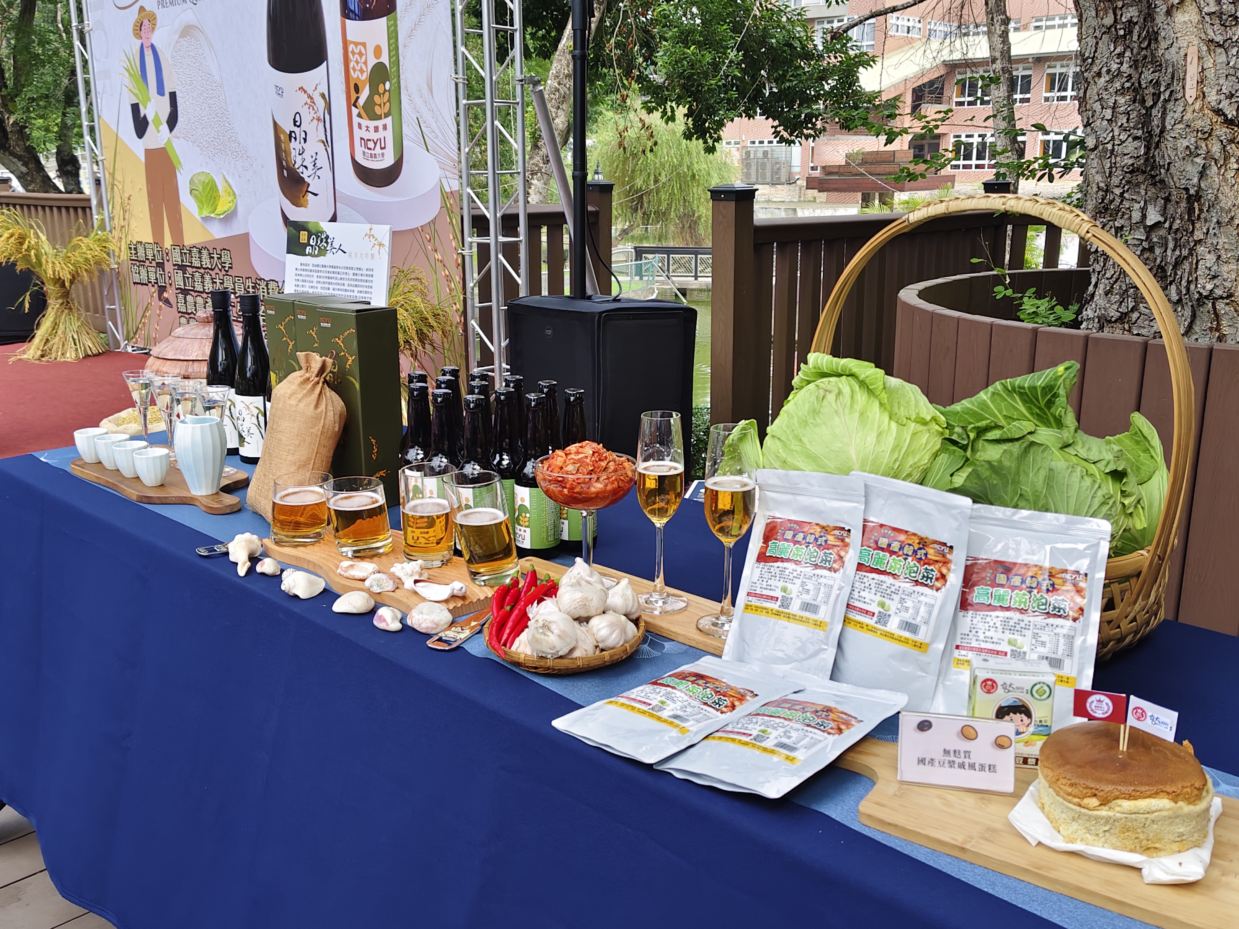 嘉義大學雙釀新品發表暨多元產品開發發表會,推出全新農糧產品。(圖/記者任芳葵攝)