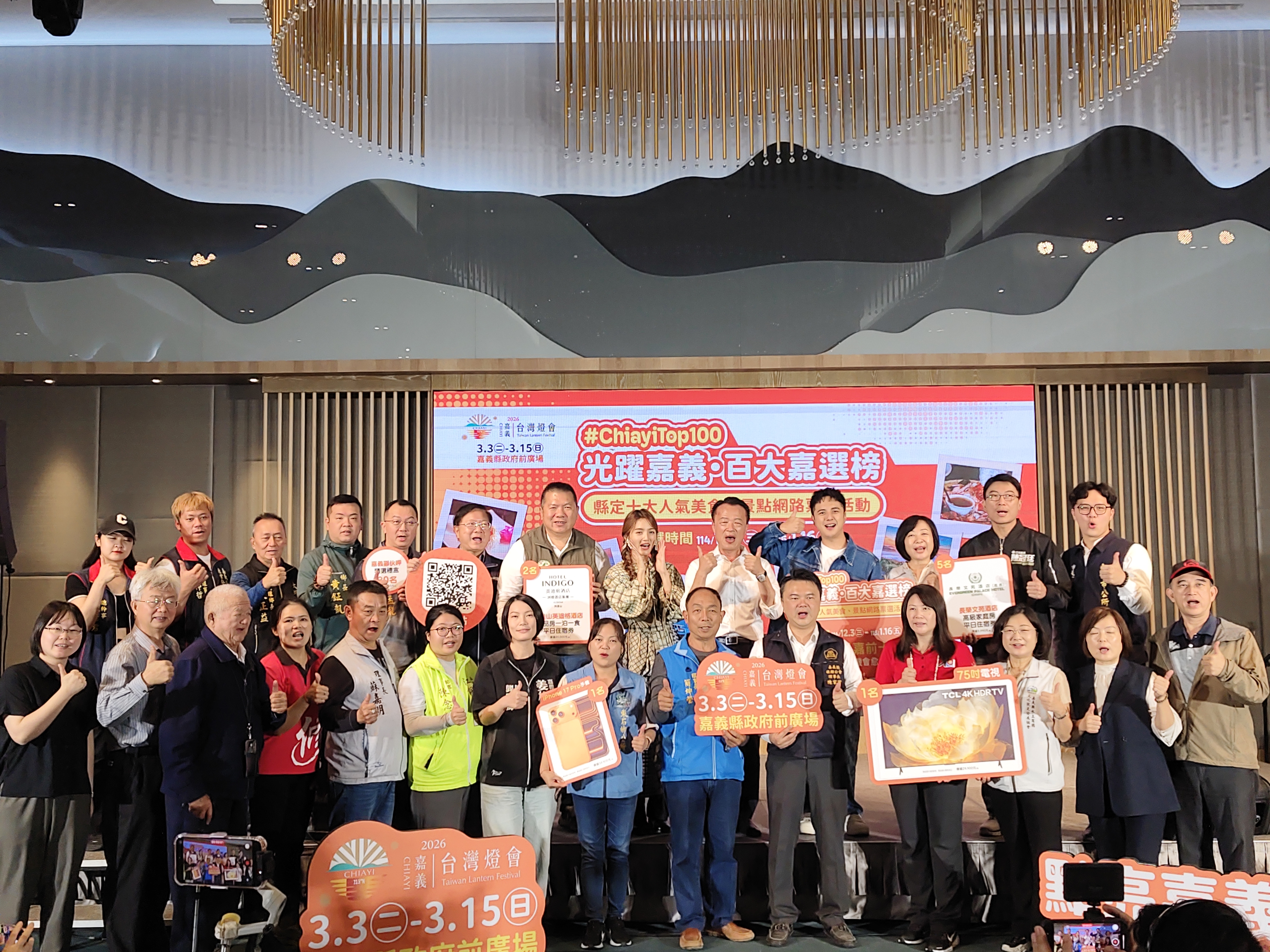 (記者任芳葵嘉義報導) 2026台灣燈會將在3月3日至3月15日於嘉義縣府前廣場舉辦,燈會以「點亮嘉義‧光躍台灣」為主軸,嘉義縣舉辦「光躍嘉義‧百大嘉選榜」票選活動,邀請民眾選出最代表嘉義縣的美食及景點,縣長翁章梁配合邀請全縣18鄉鎮店家齊聚,展示自家招牌美食,食尚玩家主持人朵拉(Dora)及曾子余也到現場分享嘉義縣的私房景點。