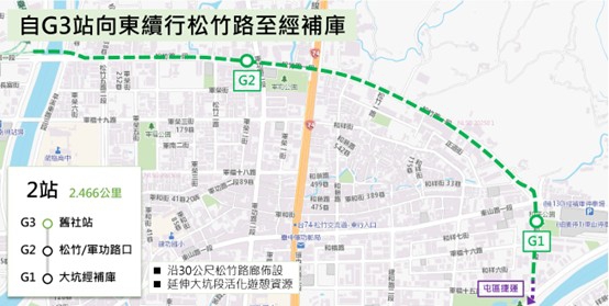 捷工局補充,綜合規劃將於明年第一季送中央審議,待行政院核定後,預估9年可完成興建。大坑延伸段未來可提升遊憩交通品質、改善假日壅塞並促進地方觀光。